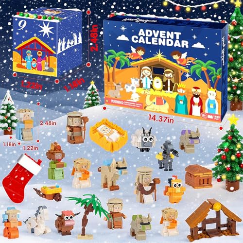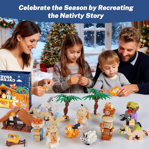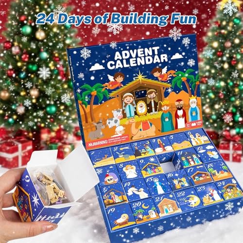 2025 Christmas Advent Calendar – 24 Days Nativity Scene Set Building Blocks Christmas Countdown, Nativity Scene Construction Toy, Educational Festive Countdown, Surprises Gift Advent Calendars