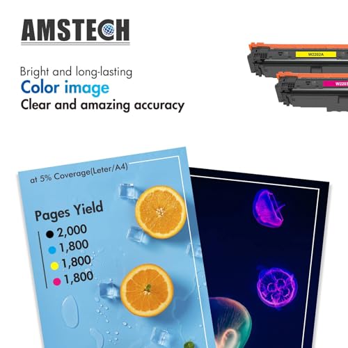 Included : Amstech 4 packs of toner cartridges compatible for HP 220A 220X Toner W2200A W2201A W2202A W2203A, Toner (With Chip, Not Original) Provide high quality print jobs with good effect
