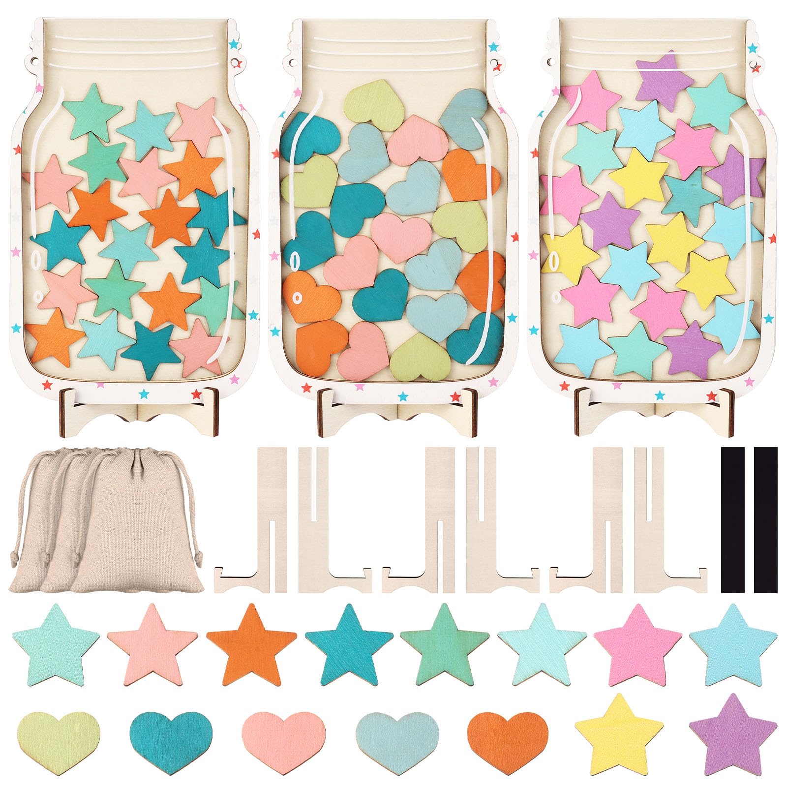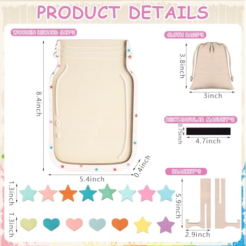 - Reward Jars: You will receive 3 reward jars, 3 styles, dark star style, bright star style, heart style; 3 reward stands, 3 cloth bags, 6 magnetic strips and enough tokens in various colors; The reward jars provide a visual representation of progress, it constantly reminds student what they are working towards and encourages them to strive for their best while promoting their growth and development