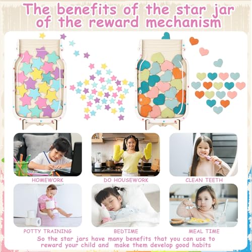 - Good Behavior Rewards: Each star reward jar has 25 tokens and comes with a cloth bag to store the remaining tokens; the reward jar is perfect for various reward systems, housework, classroom rewards, etc. You can set some specific behaviors for your student to get stars, and decide how many stars to reward your student based on the difficulty