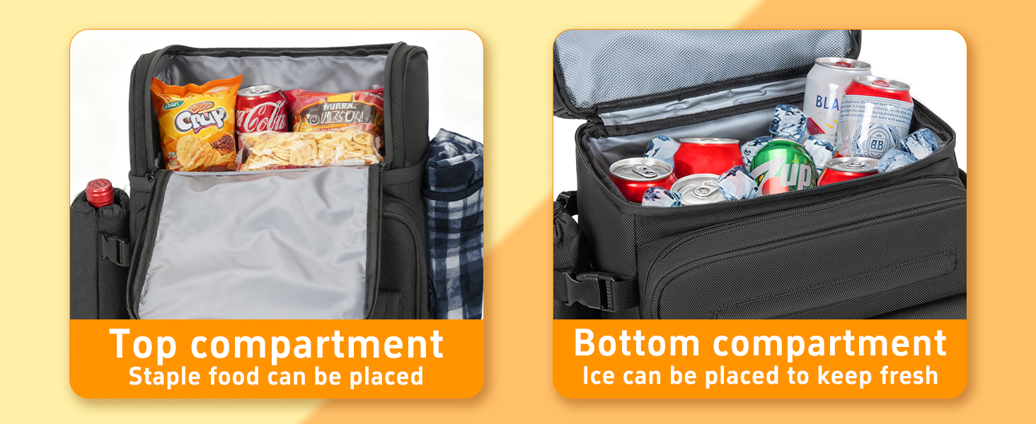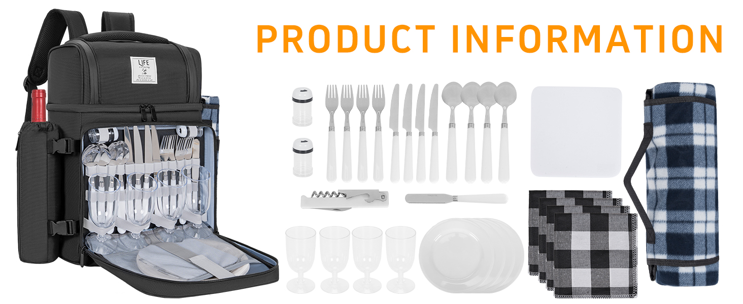 - 【Durable & Water-Resistant Build】Crafted from heavy-duty 900D Oxford fabric with waterproof PU coating and PEVA insulation, this backpack ensures long-lasting use. The shatterproof plastic tableware is lightweight yet sturdy, ideal for outdoor dining.