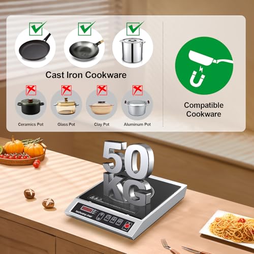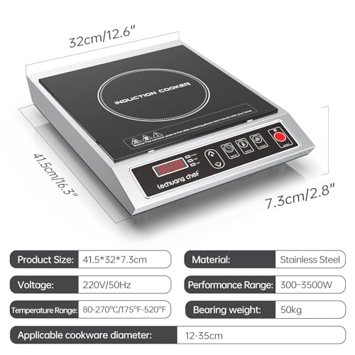- 【Portable and Stylish Design】Silver style induction cooker is attractive and stylish,being suitable for diverse styles of kitchen decoration.Compact and lightweight with a thickness of just 2.8in (7.3cm) for easy transport and storage. Lechuang Chef single induction hob is suitable for areas with limited space use.