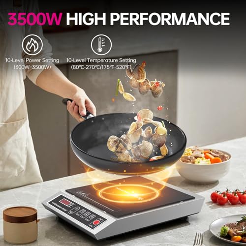 - 【Efficient and Convenient 】You can quickly choose your desired power from 2000 W to 3500 W,which meets your various cooking needs.Meanwhile ,this cooktop with 3500 W high power, fast heating speed, shorten cooking time. Makes busy people enjoy dinner as soon as possible after tired work.Prepare delicious meals every day!