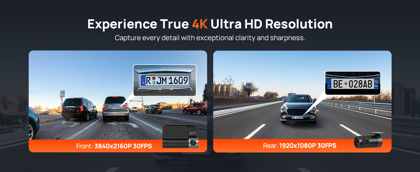 70mai A800SE Dash Cam Car Front Rear 4K UHD+1080P with GPS