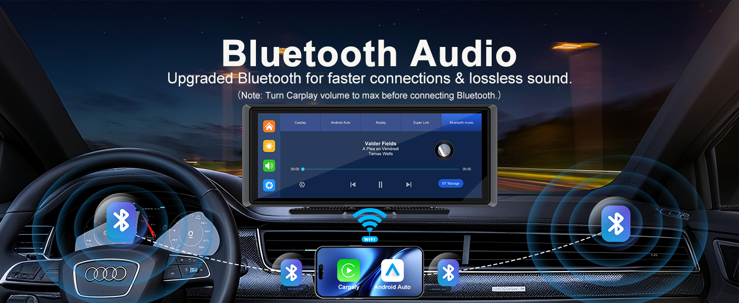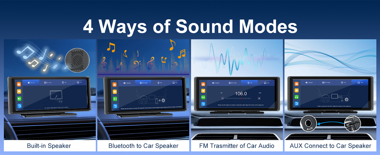 - 【OTA Firmware Updates】The car play screen comes with Over-the-Air update capability, ensuring your device stays up-to-date with the latest improvements. Regular firmware updates not only fix potential issues but also unlock new features, refine existing functions, and boost overall performance. Upgrading is hassle-free,No cables, no manual downloads—just seamless enhancements.4 Audio Output Options: Tailor Your Sound Experience.