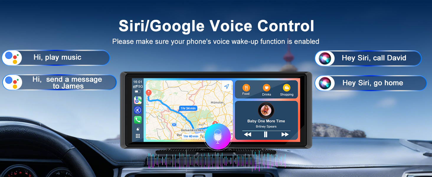 - 【Smart Voice Control & Live GPS Navigation】Our car tablet with safety meets convenience hands-free operation is made simple with Siri or Google Assistant. Use voice commands to plan navigation routes, answer/make calls, send messages, and switch multimedia content—keeping your hands on the wheel and focus on the road for safer driving.
