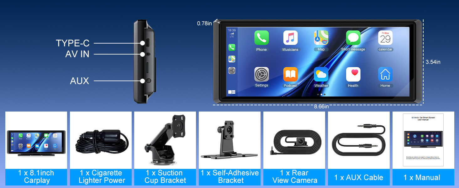 8.1″ Wireless Portable Car Play Screen for Apple Carplay