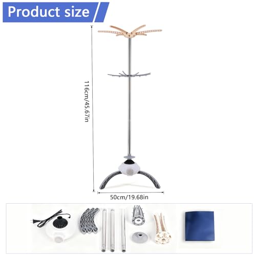 Spacious but Compact Heated Airer: Holds up to 12 kg of laundry while maintaining a space-saving footprint of 50 cm x 50 cm x 116 cm. Lightweight design facilitates easy assembly, disassembly, and movement between rooms.