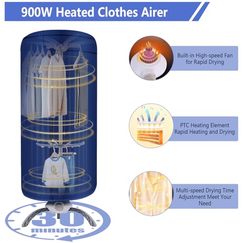 900W Heating Power & Rapid Drying: Our electric clothes dryer built-in High-speed fan for rapid drying clothes quickly regardless of weather conditions, making it ideal for rainy days or humid environments. Solves the problem of lengthy drying times associated with traditional air-drying.