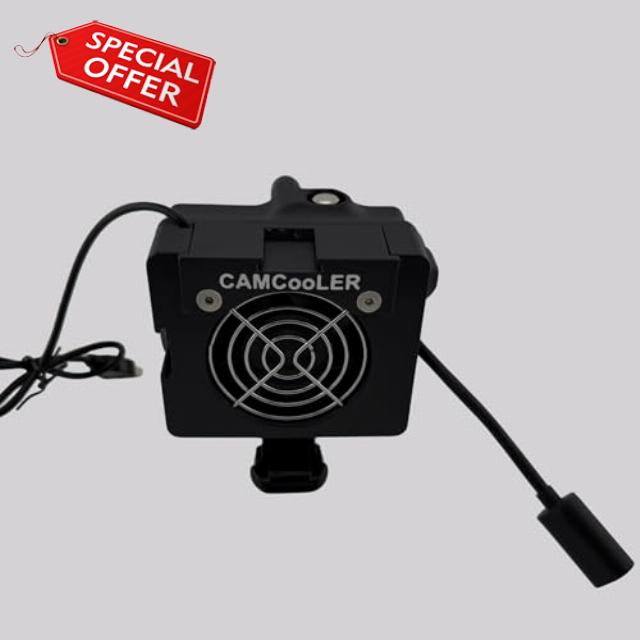 The CAMCooLER 9Thirteen is designed as an active cooling fan solution. Works with GoPro HERO9 Black, HERO10 Black, HERO11 Black, HERO12 Black, and HERO13 Black camera overheating issues when used in a static environment.