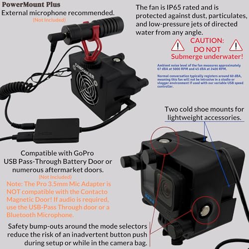 9Thirteen, Cooler Fan/Case. Works with GoPro HERO9, HERO10, HERO11, HERO12, HERO13, Reduce Overheating in Static Environments at Sporting Events,Vlogging (Black, PowerMount Plus – Variable Speed Fan)