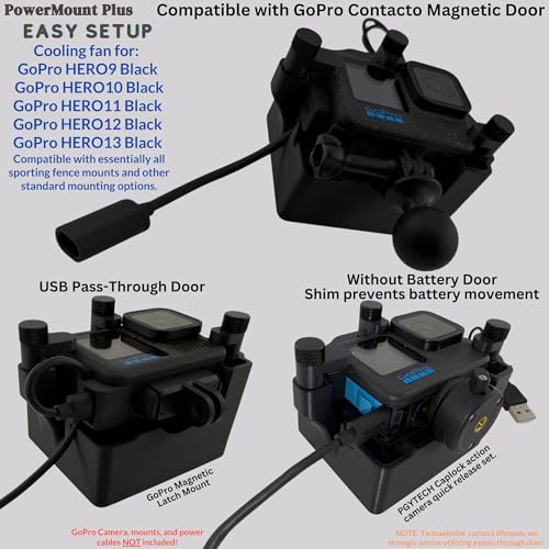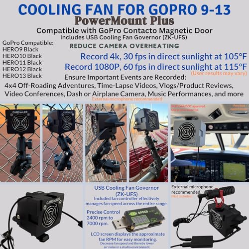 - Variable Speed Fan. Compatible with GoPro HERO9 Black, HERO10 Black, HERO11 Black, HERO12 Black, and HERO 13 Black action cameras. Helps reduce camera overheating!