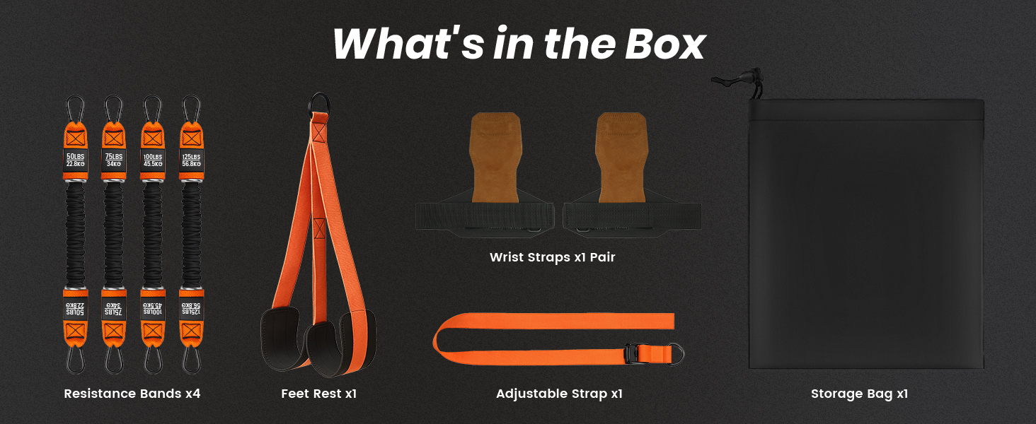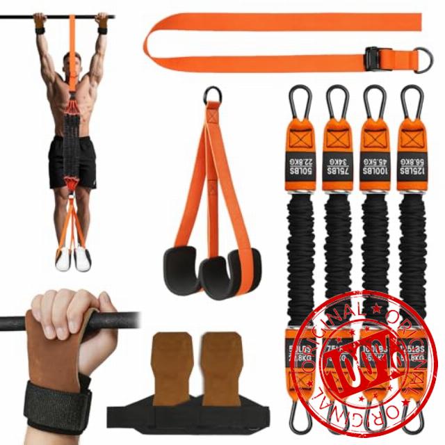 [Complete Set for Pull-Up Training] The Heavy Duty Pro Set includes 4 resistance bands (50, 75, 100, and 125 lbs), a dual-foot rest, and a pair of leather wrist straps. This all-in-one training kit helps users safely progress toward unassisted pull-ups while protecting hands and joints during intense sessions.