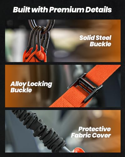 [Durable & Reinforced Construction] Each band features a natural latex core protected by a cloth cover to prevent snapping and abrasion. Paired with heavy-duty metal hooks and secure buckles, the set ensures long-lasting performance and minimizes the risk of injury from broken bands.