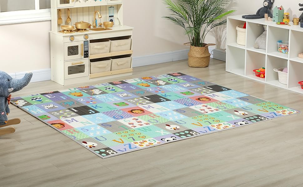 - Water-resistant surface: Spills and stains are no match – just wipe them away to keep the mat clean and ready for more playtime.