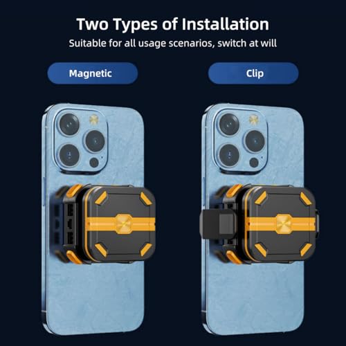 - Versatile Mounting Options: Comes with magnetic sticker and back clips. You could attatch this cooler to most device, such as iPhone /Android phones, iPads, tablets, laptop, cameras, switch, steam deck etc. Non-magnetic phone can be used with magnetic sticker or clip.