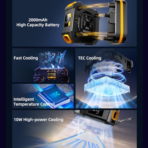 - Rapid Cooling Technology: Using high-performance senmi-conductor refrigeration technology for effective heat dissipation. Equipped with high speed fan and TEC chip, it takes just 30 seconds to lower your device's temperature to 3℃ in a 25℃ room. This effectively prevents overheating and ensures the stability of your live streaming or gaming experience.