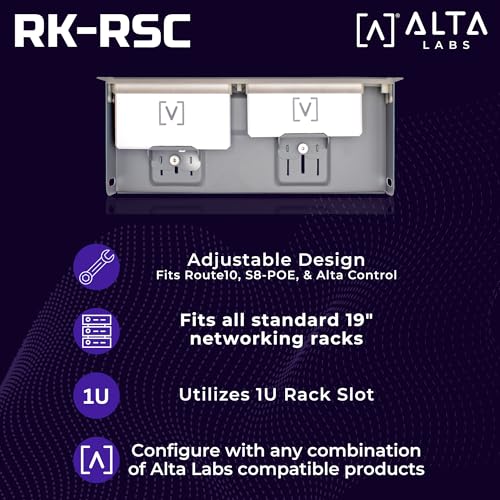 Upgrade your networking setup with the Alta Labs RK-RSC 1U Rack Mount, designed for clean, professional installations. This heavy-duty steel bracket allows you to mount two Alta Labs devices side by side in a single 1U rack space—perfect for the Route10, S8-POE, or Alta Control. By combining multiple devices into one slot, the RK-RSC saves valuable space while keeping your rack organized and efficient. Built for standard 19-inch racks, this mount integrates seamlessly into home, business, and enterprise environments. Pre-drilled mounting points ensure fast and easy installation, while the durable steel construction delivers long-lasting reliability. Whether you’re setting up a home lab, upgrading your office network, or deploying enterprise infrastructure, the RK-RSC provides a secure and streamlined solution for your Alta Labs hardware.
