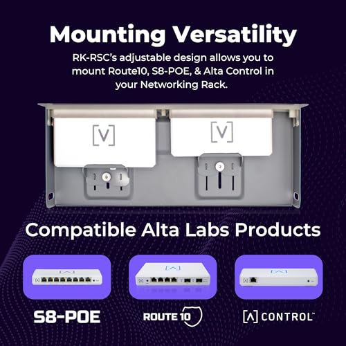 Alta Labs RK-RSC 1U Rack Mount | Dual Side-by-Side Mounting Bracket for Route10, S8-POE & Alta Control | Fits Standard 19-Inch Networking Racks | Heavy Steel Construction for Enterprise Networking