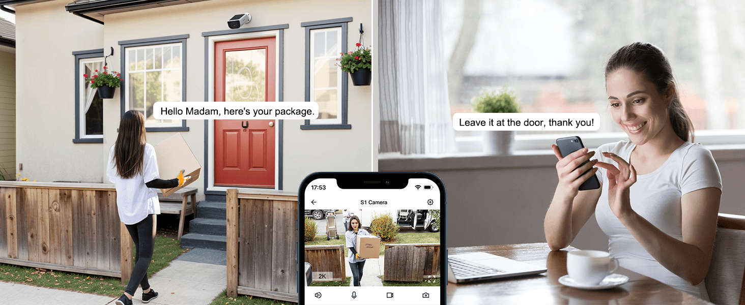 - Two-Way Talk & Siren & Multiple Users: The outdoor camera wireless has a built-in microphone and speaker that you can remotely view, talk & listen to the family members or couriers through the APP. You can share the cameras house security with family members. So everyone can stay connected and protected