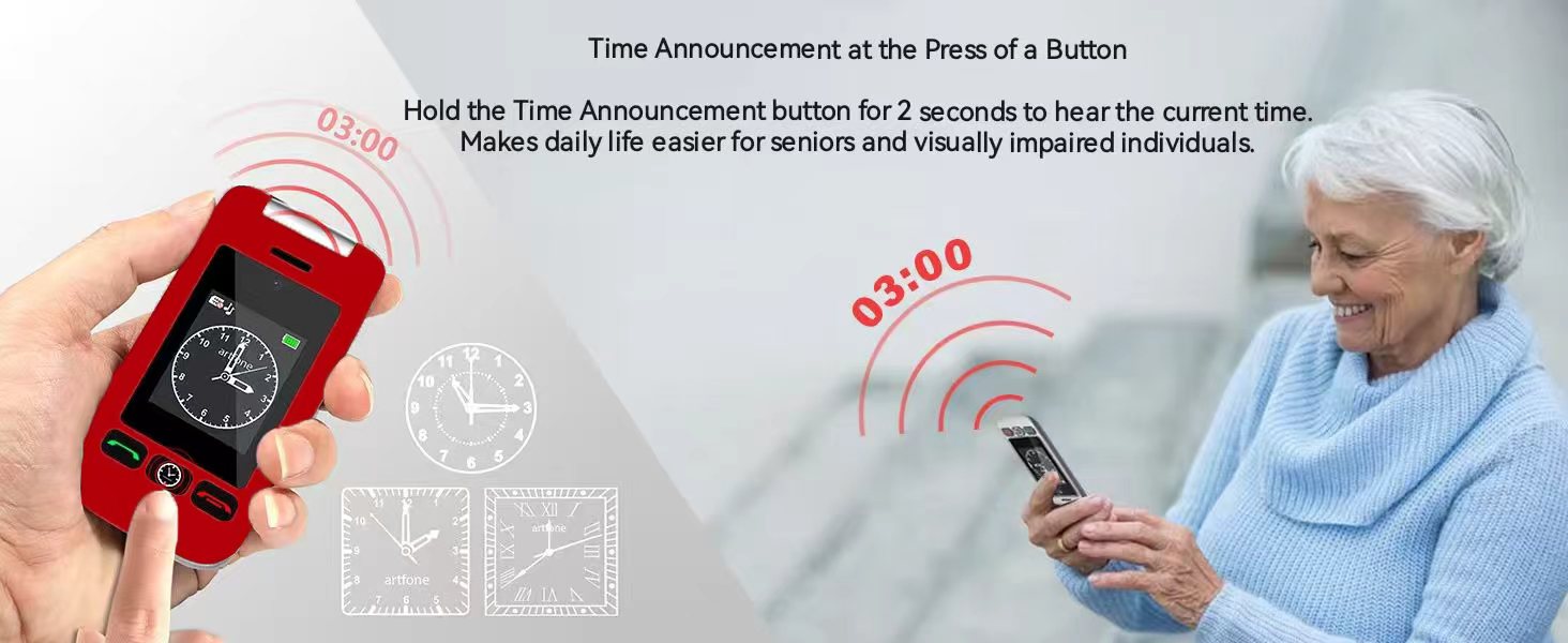 - 【Dual Color Screens for Enhanced Usability】The Artfone G6 features a 2.4-inch HD main screen and a 1.8-inch external screen, perfect for seniors. The secondary screen includes a multilingual voice time-telling button, making it ideal for elderly users with vision impairments. Quickly check notifications and time without flipping open the phone, ensuring convenience and accessibility.