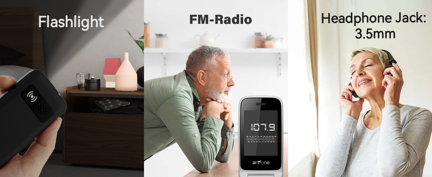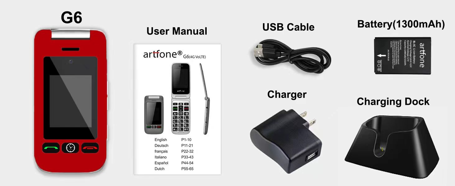 Artfone G6 from All Angles: Unlocked Flip Phone Designed for Elderly People