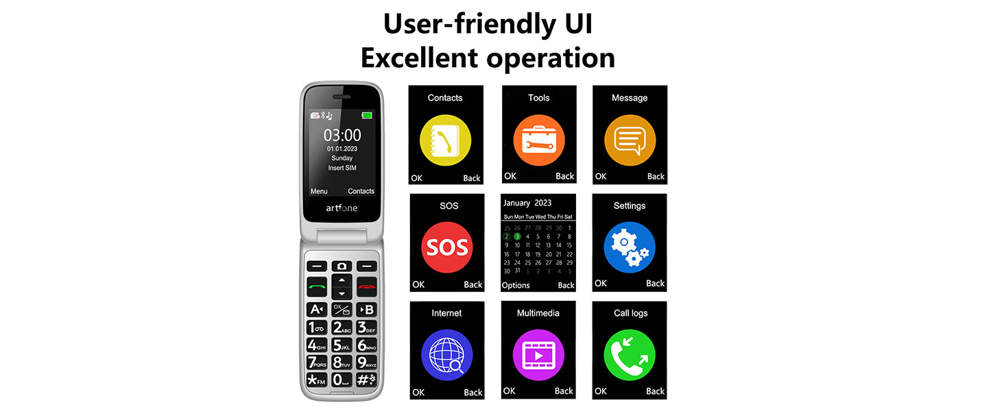 - 【Universal SIM Compatibility for Seamless Connectivity】The Artfone G6 supports 2G, 3G, and 4G Nano SIM cards from any European or UK carrier, ensuring reliable connectivity wherever you are. Whether at home or traveling, this flip phone for seniors UK offers flexibility and ease of use, making it a great option for elderly users.