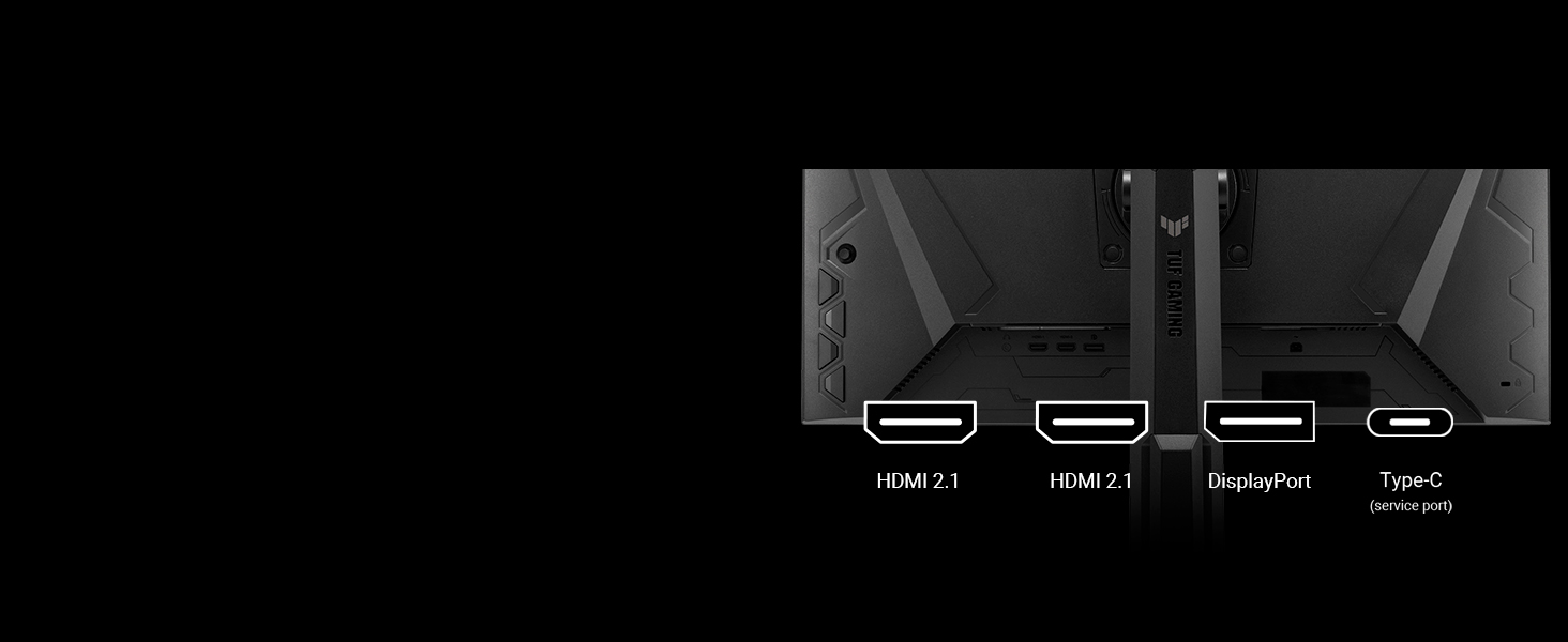 A multitude of connectivity options includes two HDMI 2.1 ports, a DisplayPort 1.4, and a USB Type-C port, ensuring wide compatibility with a variety of input sources.