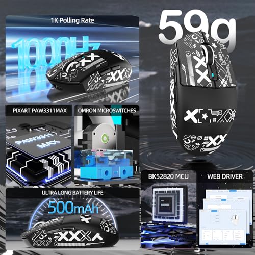 - 【500mAh Battery & Dual-Layer PTFE Feet】Its 500mAh battery offers up to 200 hours of playtime on a single charge—perfect for marathon gaming or a full week of work and play without interruption. Equipped with premium dual-layer PTFE feet, it delivers ultra-smooth, stable glide for precision in every FPS, MOBA, MMO, RPG, and Battle Royale match.