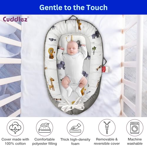 - [SOFT & SAFE MATERIALS] – Made with a 100% cotton cover and hypoallergenic filling, this baby nest provides a breathable, skin-friendly, and cozy environment for your newborn.