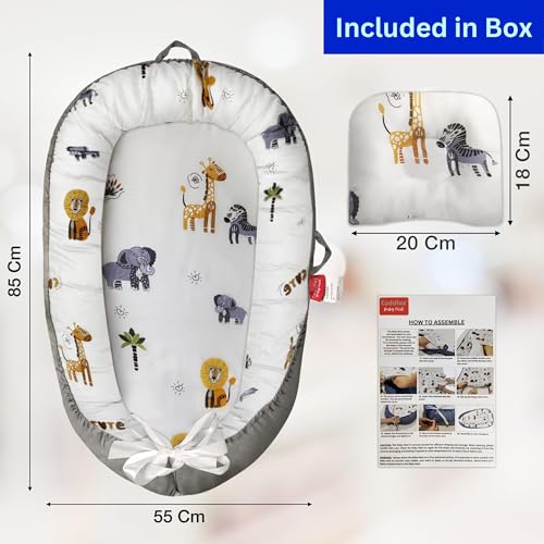 A soft, supportive, and safe space for your little one to rest, nap, or play under supervision. Crafted with breathable, skin-friendly fabrics and cushioned bumpers, this baby nest offers gentle head support and snug sides to help your baby feel secure. Lightweight and portable, it’s perfect for use at home or while travelling. The removable, washable cover makes cleaning hassle-free.