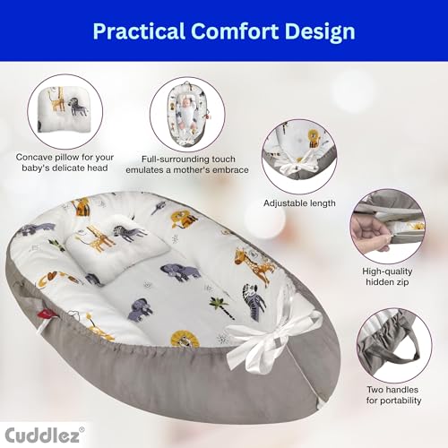 - [ADJUSTABLE, GROWING WITH BABY] – Designed for babies 0–12 months, the adjustable cord lets you resize the nest, so it grows with your child and can be fully expanded when needed.