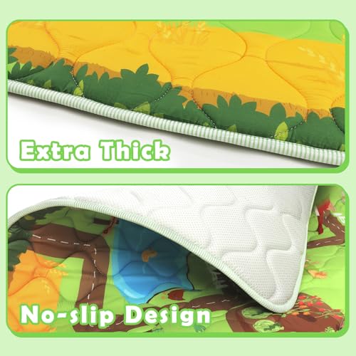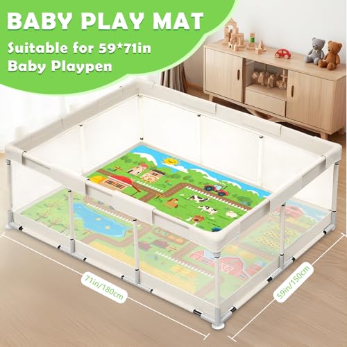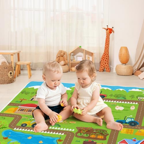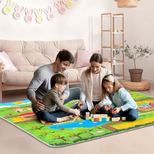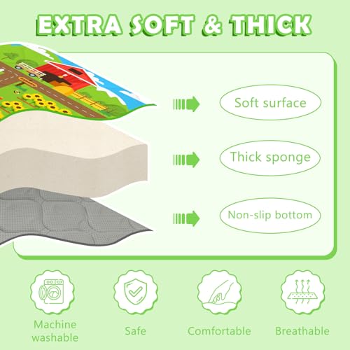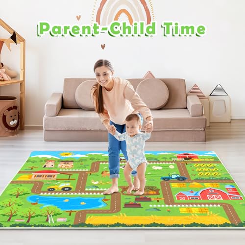 Baby Play Mat for Floor,180x150cm Large Baby Playmat,Soft Foam Floor Mat Washable Foldable for Tummy Time, Safe Non-Slip Backing for Newborn Toddler Kids Crawling,Green Farm