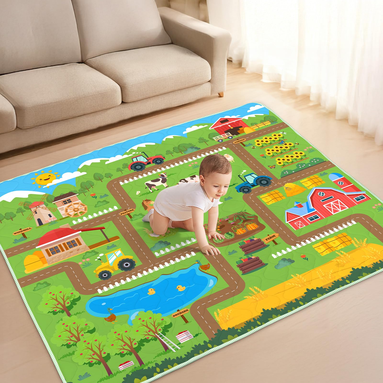 Cute Patterns: The unique and cute Green Farm pattern design attracts the baby's attention and stimulates the child's curiosity and desire to explore. It is not only an infant play mat but also an attractive gift for new parents or a baby welcome party.