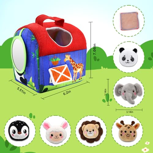 Baby Toys 6-12 Months – Soft Barn with Stuffed Zoo Animals with Real Sounds, Mirror – Montessori Toys for Babies 6-12 Months Sensory Infant Toys for Toddlers 1 2 3 Year Old Boys Girls Birthday Gifts