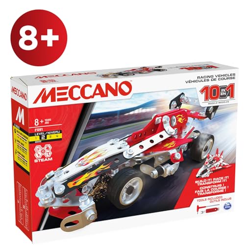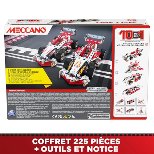 BANDAI – Meccano Racing Vehicles 10-in-1 – Construction Set 10 Models – 225 Pieces, Tools, Instructions – Activity Kit Car/Plane/Boat Racing – Toy from 8 Years – APM20104