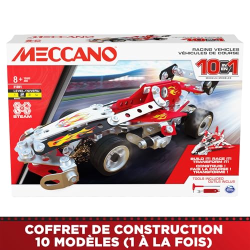 10 RACING VEHICLES IN 1 CASE – This Meccano construction kit includes everything you need to assemble and reassemble 10 vehicles: cars, planes, boats and more. Assemble the parts and build the vehicle of your choice among the proposed models. The built vehicle can then be disassembled to start a new construction