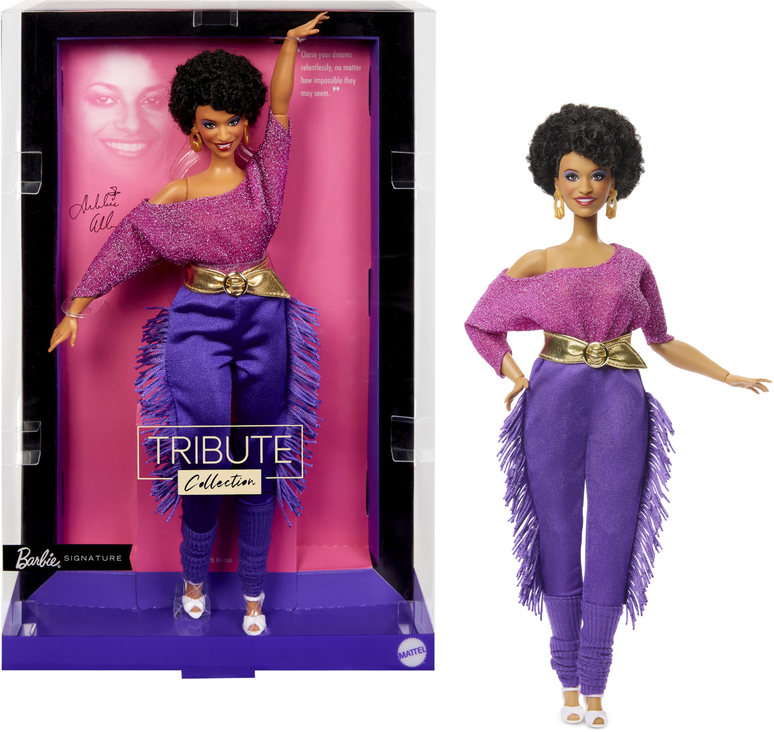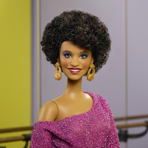 Barbie Signature Doll, Debbie Allen Tribute Collection Posable Doll with Off-Shoulder Top, Gold Belt, and Purple Fringe Pants with Leg Warmers, JBJ24