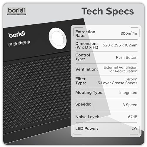 Baridi 52cm Built in Cooker Hood with 5 Layer Filter, Black