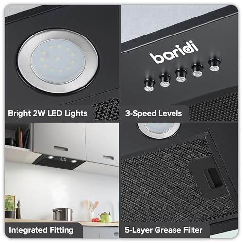 Baridi 52cm Built in Cooker Hood with 5 Layer Filter, Black Undercounter Extractor Fan – DH285