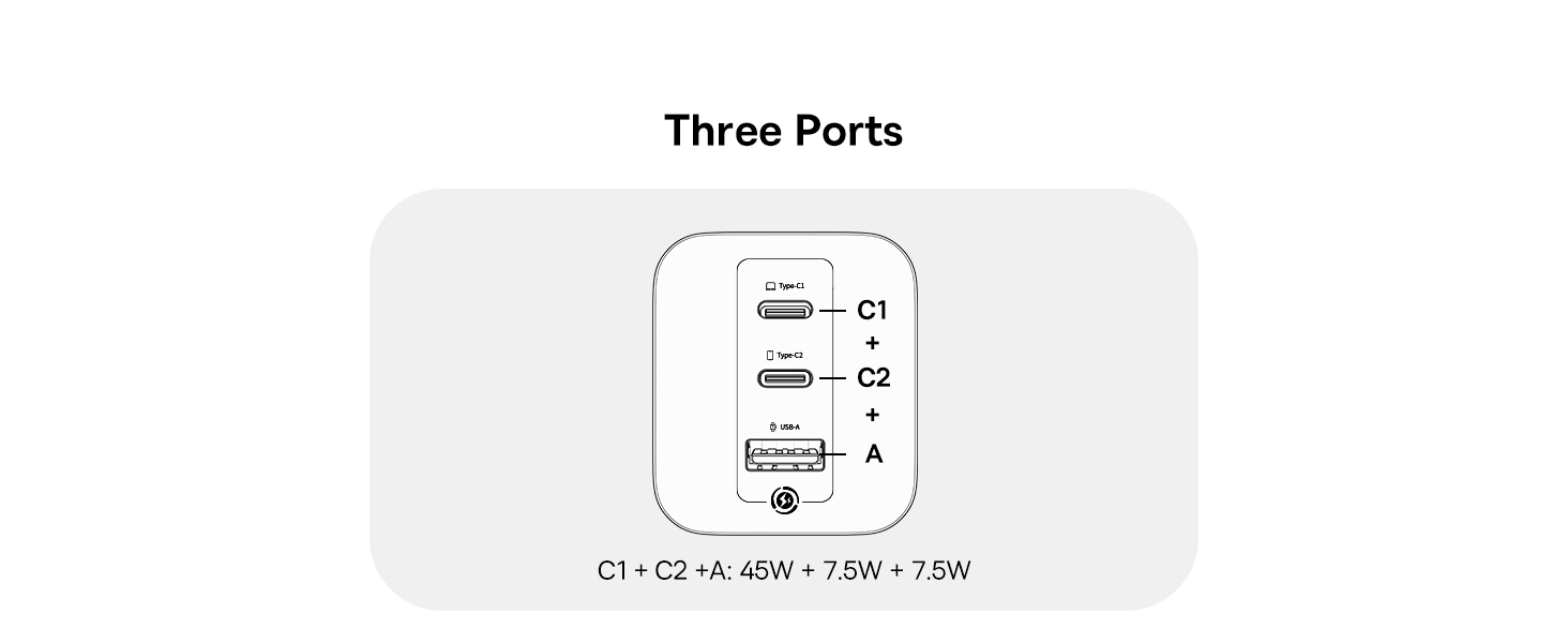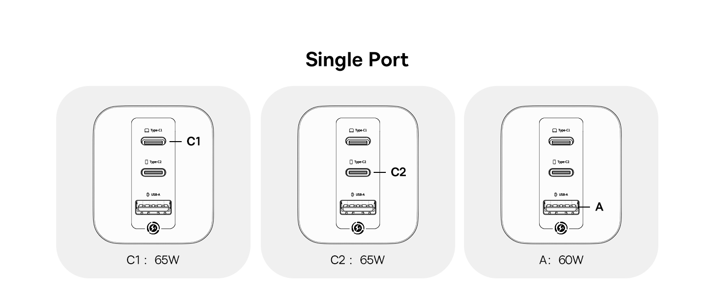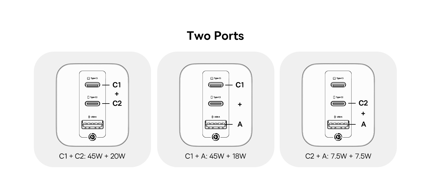 Max Output for 1 Port | 65W | 100W | 45W | 22.5W | 45W | 100W | 100W |