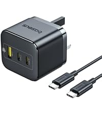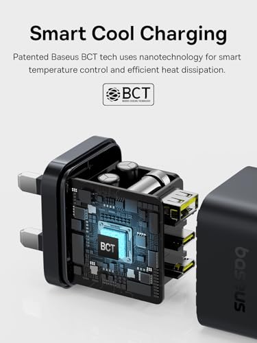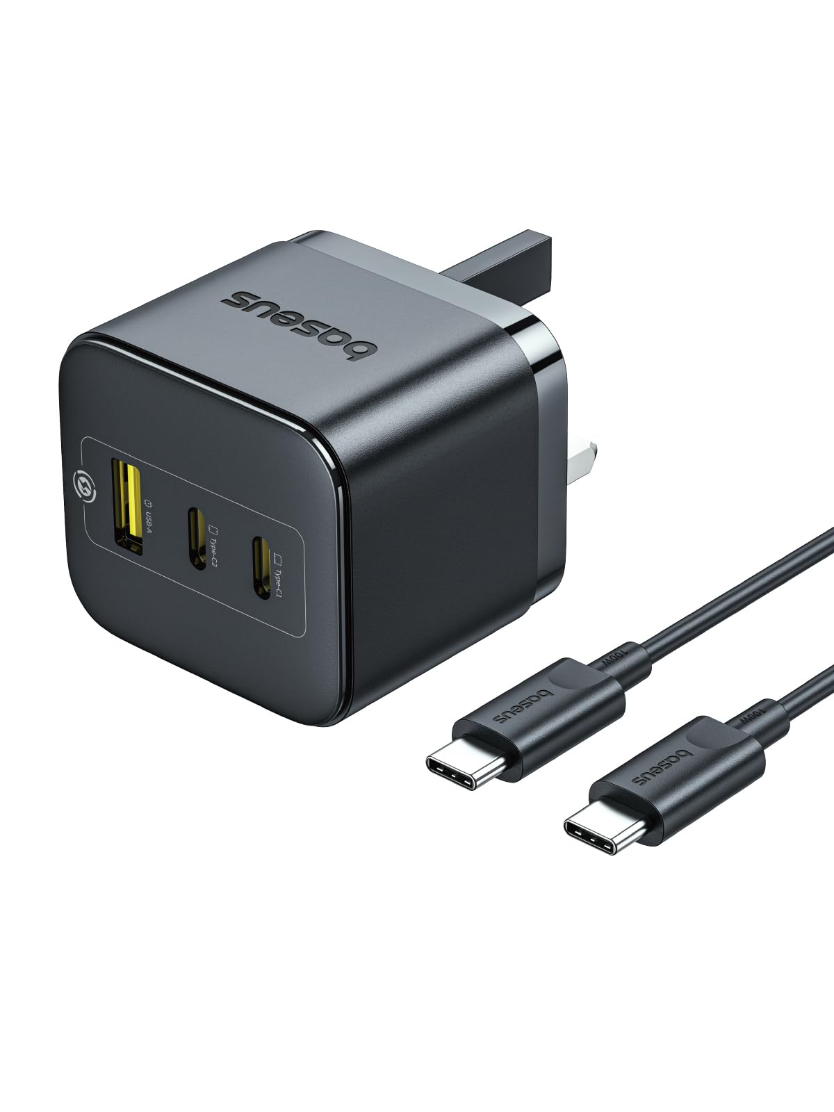 Baseus 65W USB C Charger Plug UK, MacBook Charger, PPS 3-Port Fast Charging Compact GaN USB C Charger, Compatible with MacBook Pro/Air, iPhone 17 16 15, iPad, Galaxy S24/S23, Steam Deck, Switch