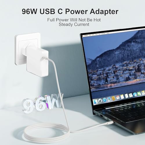 - Safe and reliable performance: The 96W USB C power adapter is made of the highest quality material and includes many intelligent features. It has passed CE/FCC certification and can prevent IC overcurrent, IV error voltage, SC short circuit, and IO internal overheating. High quality cables with anti-interference rings. Effectively protect your laptop.