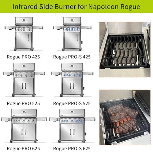 - Maximize Your Grill's Potential: The ceramic infrared side burner for Napoleon Rogue can produce intense high heat, is perfect to lock in flavorful juices and retain moisture, ideal for searing steaks, chops, vegetables and more, meeting your various cooking needs, and giving you a more professional grilling experience