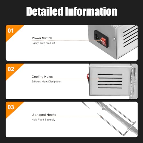 POWERFUL ROTATION SYSTEM: A one touch switch drives the 53 inch rod at a steady 2.5 RPM for 360° even cooking, while manual override lets you target specific areas for restaurant quality results