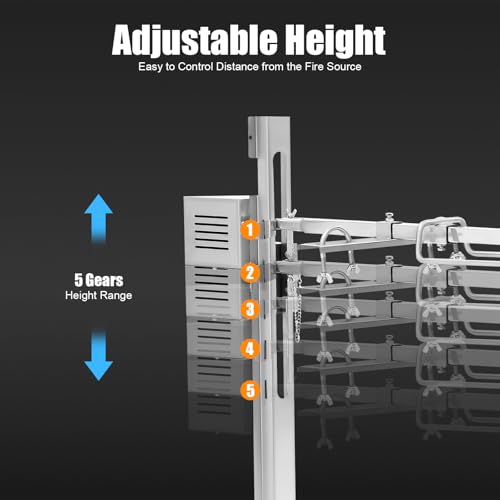 FIVE LEVEL HEIGHT CONTROL: Shift effortlessly between five positions to fine tune the distance from coals, giving you perfect control over crisp skin or juicy interiors every time