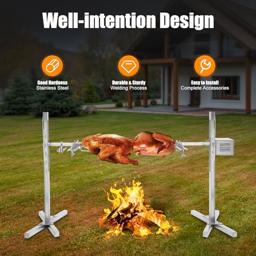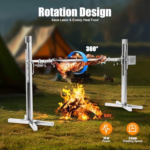 binxun Electric Rotisserie Grill, 53 Inch Stainless Steel BBQ Rack with 2.5 RPM Motor & Double U-Hook, 5‑Gear Height Adjustable Rotisserie Spit Roast Grill for Outdoor Barbecue and Camping