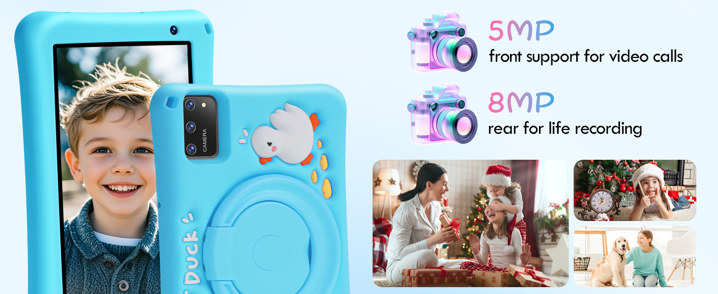 - 【High-Performance Kids Tablet】 This kids tablet runs Android 13 with an octa-core processor, 8GB RAM + 64GB storage (expandable to 256GB), delivering smooth operation for educational apps, games, and multimedia content.