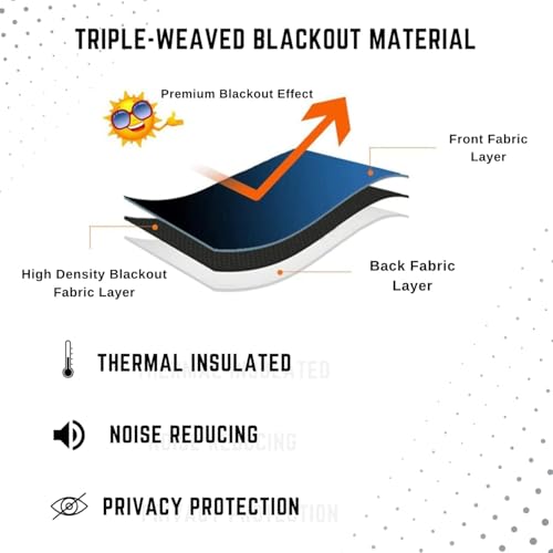 The blackout curtains feature an innovative triple weave technology to provide better light blockage effects, Blocks 80-90% of sunlight and UV rays.
