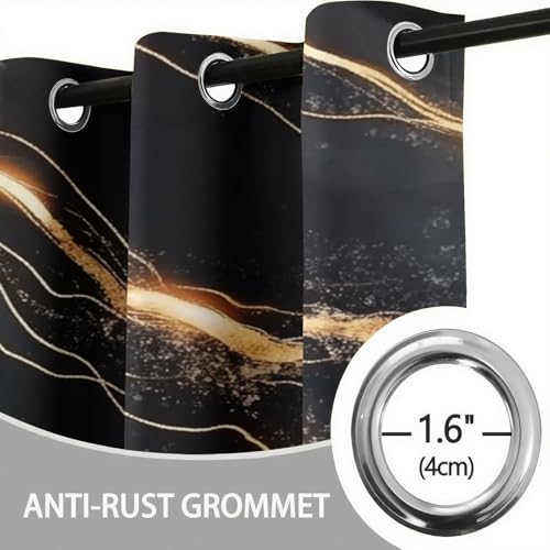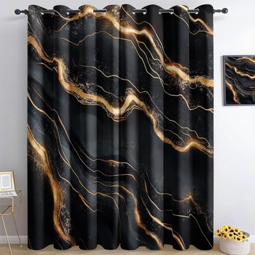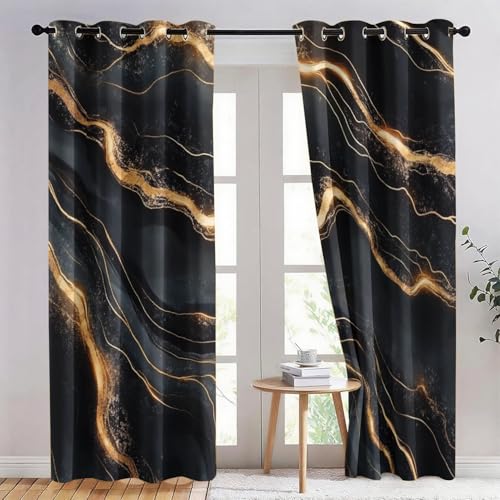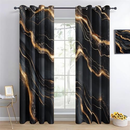 Black Gold Marble Pattern 3D Print Pattern Thermal Insulated Window Drapes For Kids Boys Girls Bedroom Living Room 46 X 72 Inch Drop 2 Panels Curtains Eyelet Blackou